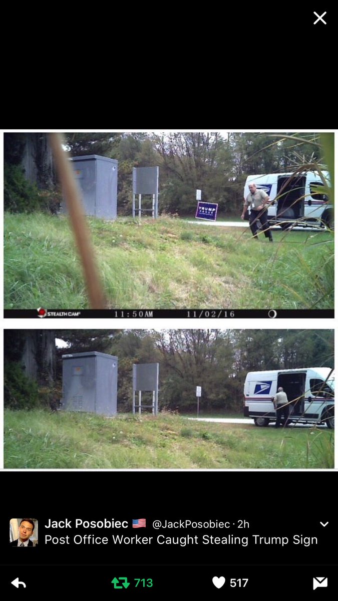 Categories Posted inin Latest Headlines Mailman Caught on Camera Stealing Trump Signs Posted byby Weapon of Mass Instruction November 6, 2016 0 Comments The worst part is that when they find out who it is he will get a raise and a promotion.
