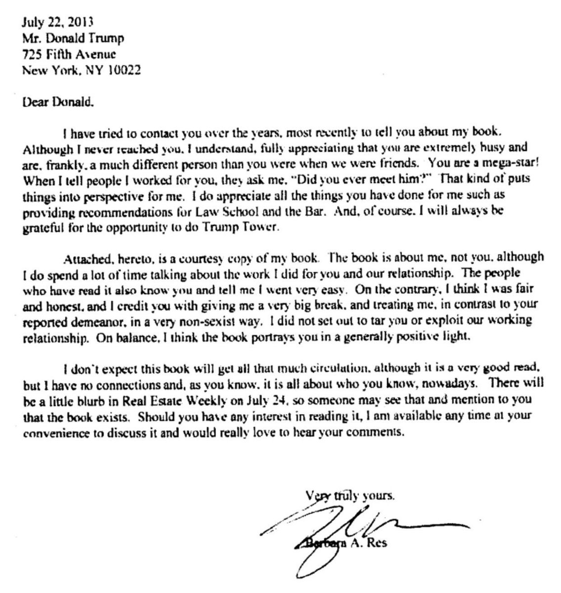 In 2013, she published a book on her life. In the book she plenty of good things to say about Trump and even sent his office a nice letter: